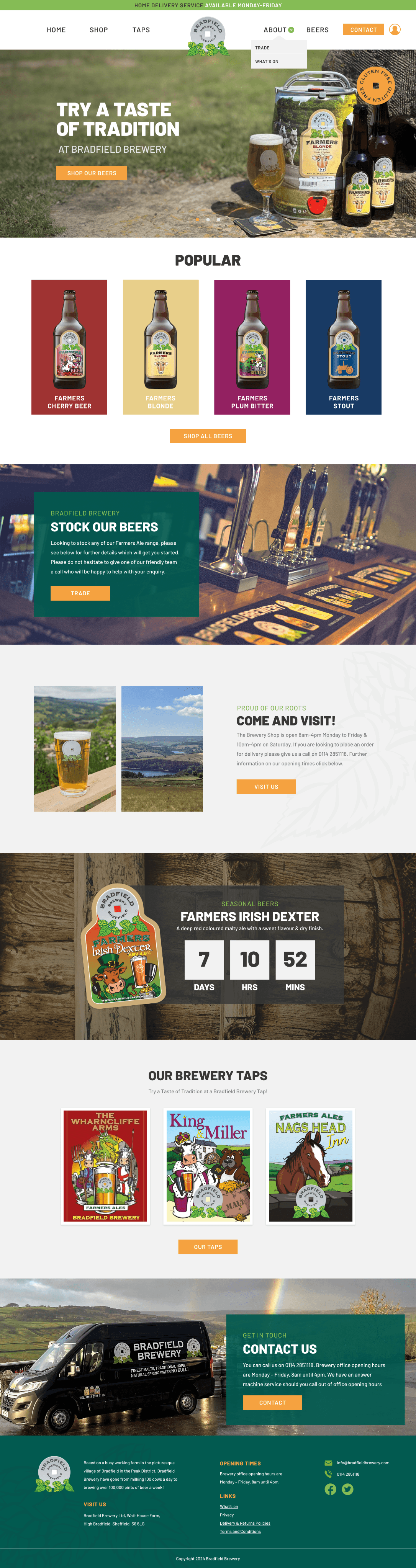 We rebuilt the website with e-commerce at its core, giving Bradfield Brewery a straightforward way to sell beers and merchandise directly to consumers online.